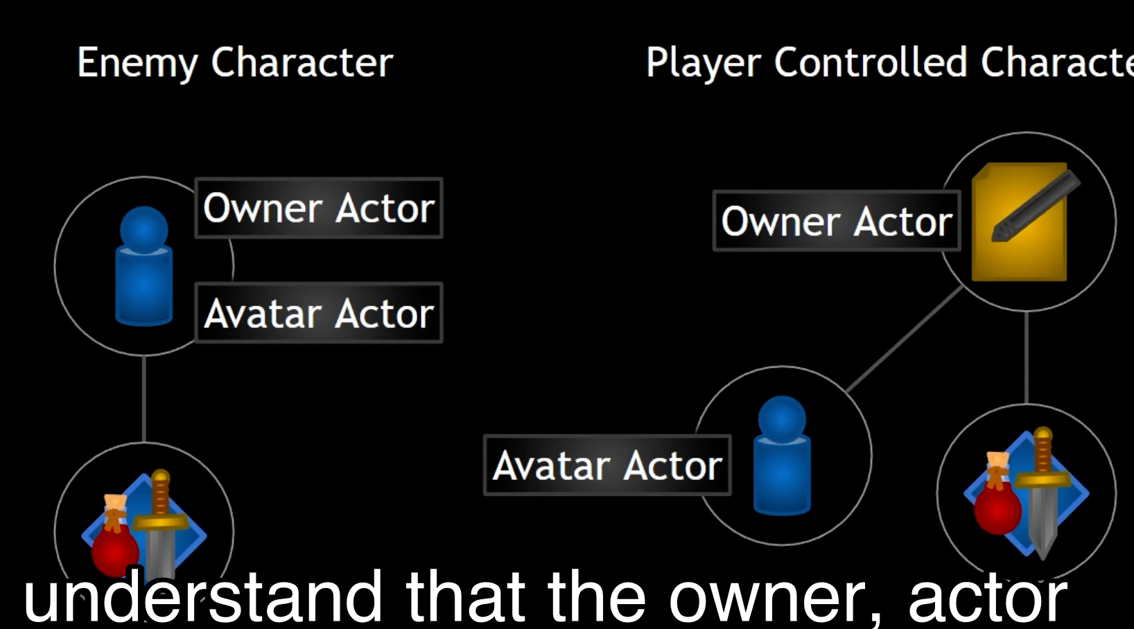 Distinguish Owner Actor and Avatar Actor. For example, Aura enemy is both owner and avatar, player state is owner, controlled character is avatar.