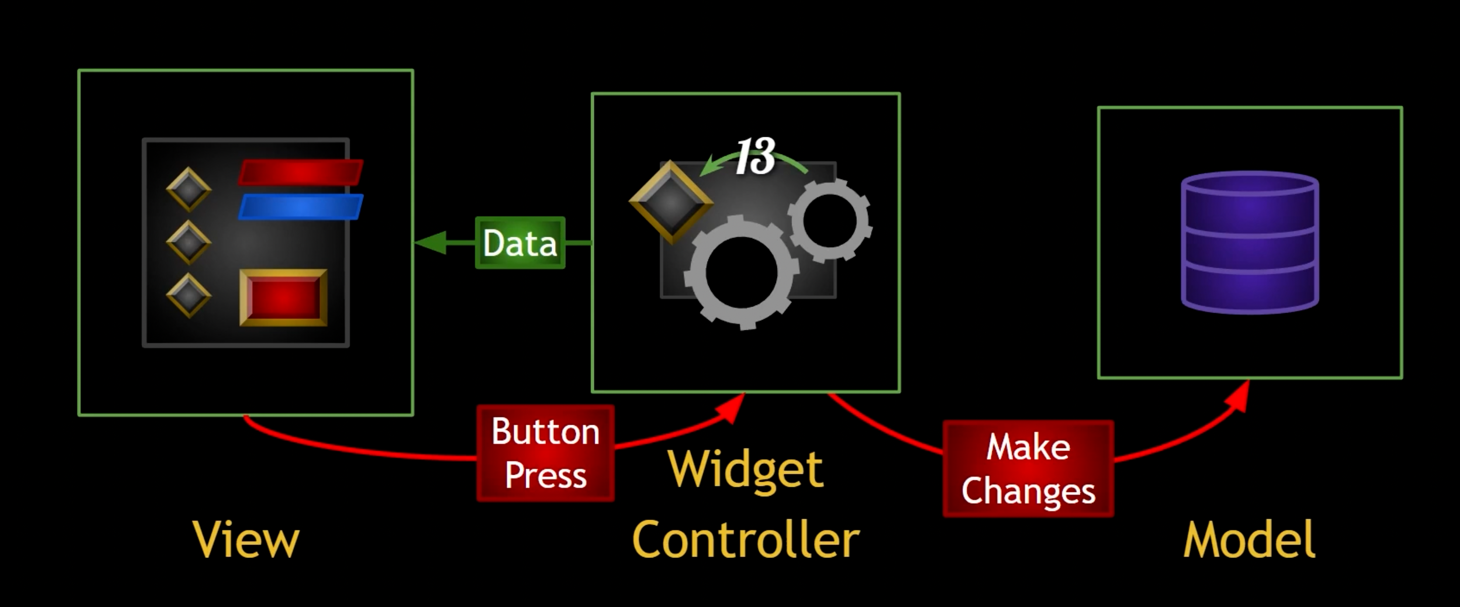 }としている。けど、なんでControllerはWidget本体を知らない方がいいのか……?