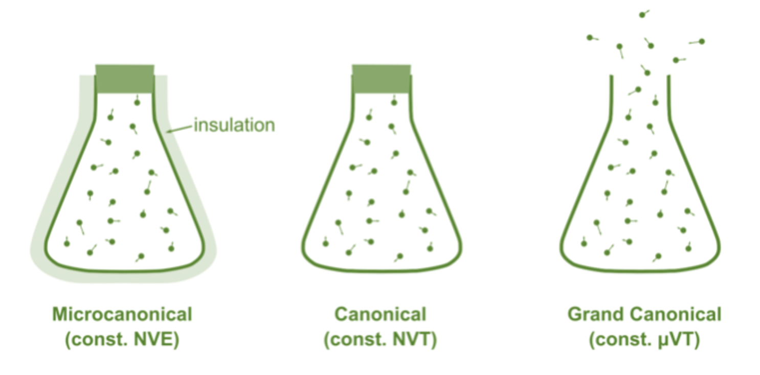 | 性質 | ミクロカノニカル | カノニカル | グランドカノニカル |