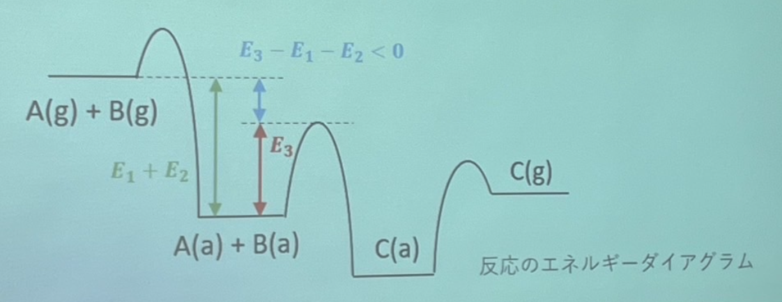 と考えて、反応速度式を求めると、おかしくなる。どうおかしくなるかは面倒なので具体的には書かない。めんどくさい