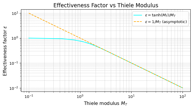 ax.set_title('Effectiveness Factor vs Thiele Modulus', fontsize=14)