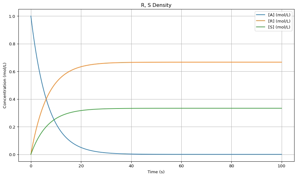 ここで考える反応装置とは回分反応器(バッチ式)で、これの特徴は、閉じた系であること、反応物質の濃度が空間的に均一であること、反応物質の濃度が時間的に変化することである。